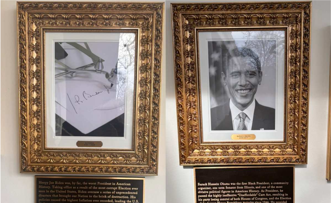 Aunque incluye a varios exmandatarios, las placas dedicadas a Joe Biden y Barack Obama, ambos demócratas, concentran las críticas más duras.